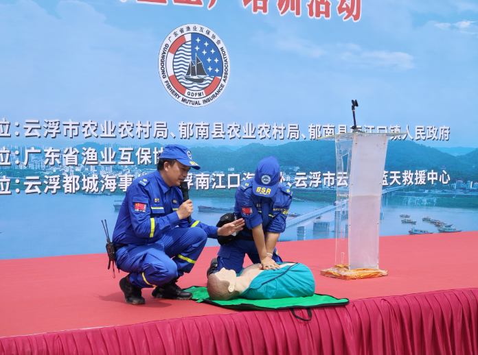 在培训环节,广东省渔业互保协会领导详细讲解了渔业保险的相关政策,帮助渔民更好地了解保险保障机制。南江口海事处有关负责人结合实际案例,深入浅出地讲解了水上交通安全知识,强调了规范操作的重要性。市农业农村局专家针对渔船安全隐患排查及整改进行了专业指导,从技术层面为渔民提供了支持。云城蓝天救援中心的讲师现场演示了急救知识、心肺复苏术和灭火器使用方法,让参与者在理论与实践结合中提升自救互救能力。
